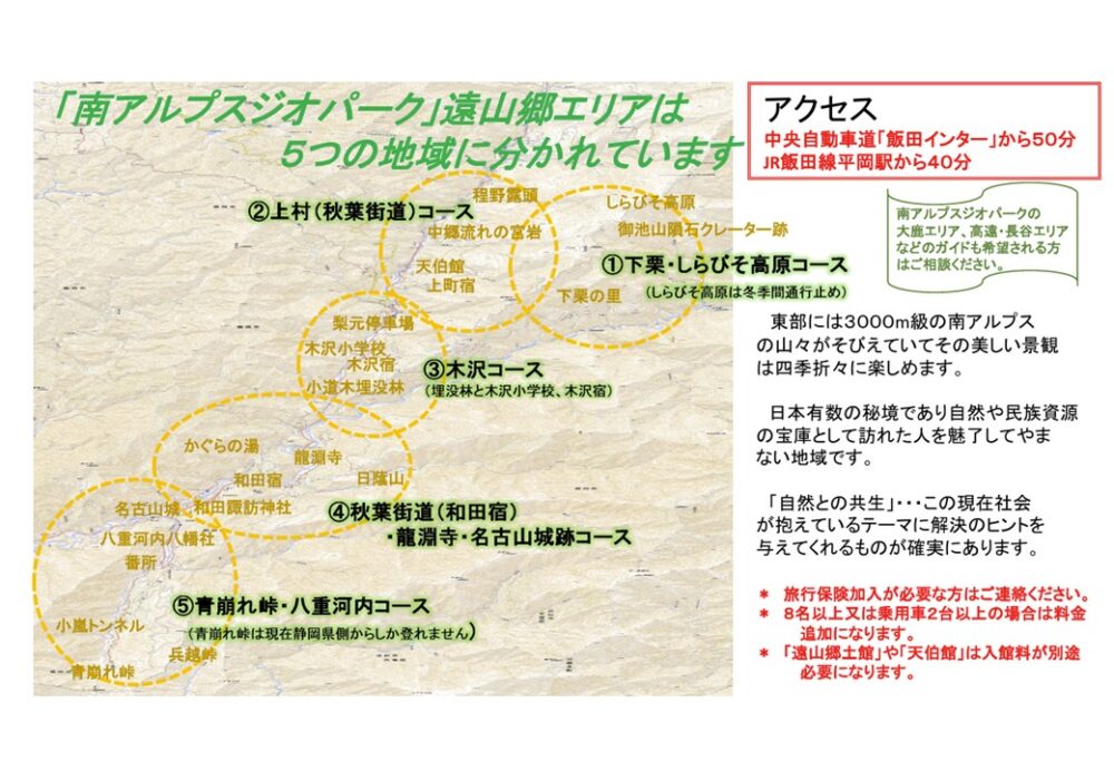 ジオパーク、エコパークのみならず歴史・民族・文化・体験など観光全般について・・・「遠山ガイドの会」のメンバーがご案します。