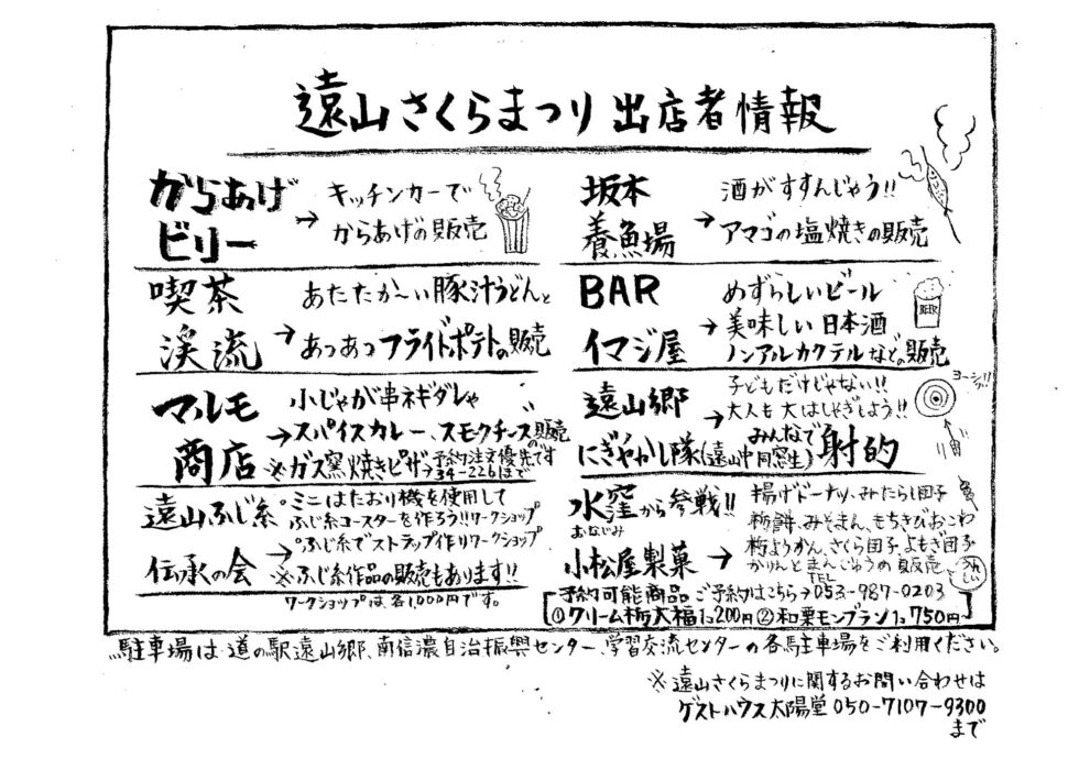「まだ咲いててね!!遠山さくらまつり」(主催 和田宿にぎやかし隊)のお知らせです。