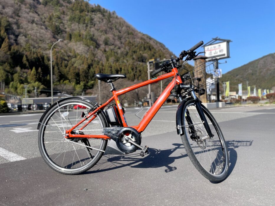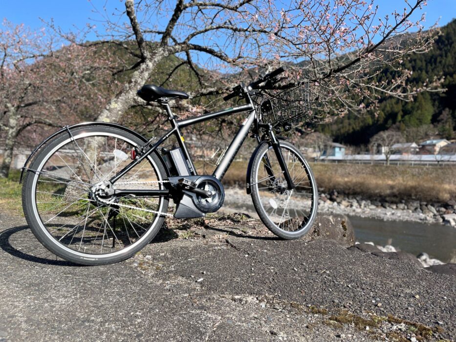 周囲を山に囲まれ、起伏の多い遠山郷ですが、電動アシスト付きですのでスイスイ走れます。
